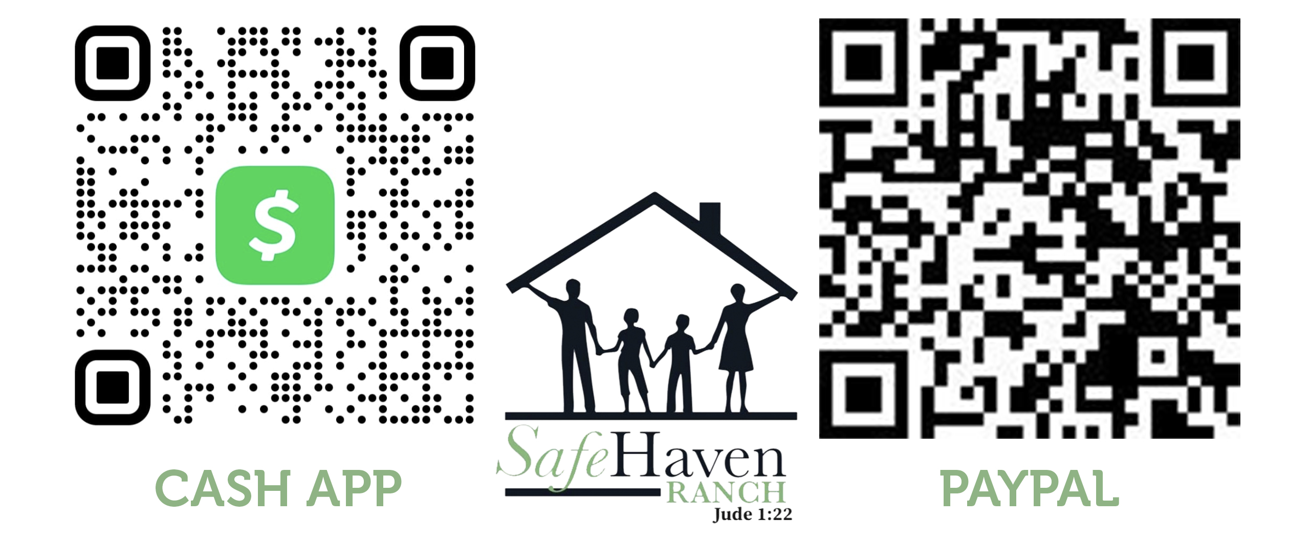 Can be sent, made payable to Safe Haven Ranch, via US mail to our address at: